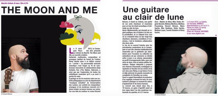 Guitariste multicartes, compositeur et arrangeur habitué du travail de l’ombre, Rémy Gachis aime à se définir comme un « ouvrier » de la musique. Mais pour une fois, c’est lui qui passe sur le devant de la scène, accompagné de sa guitare. Dans The Moon and Me, musiciens et chanteurs viendront tour à tour le rejoindre dans une série de morceaux et d’ambiances variés, empruntés à Tom Paxton, Fred Pellerin ou David Bowie.